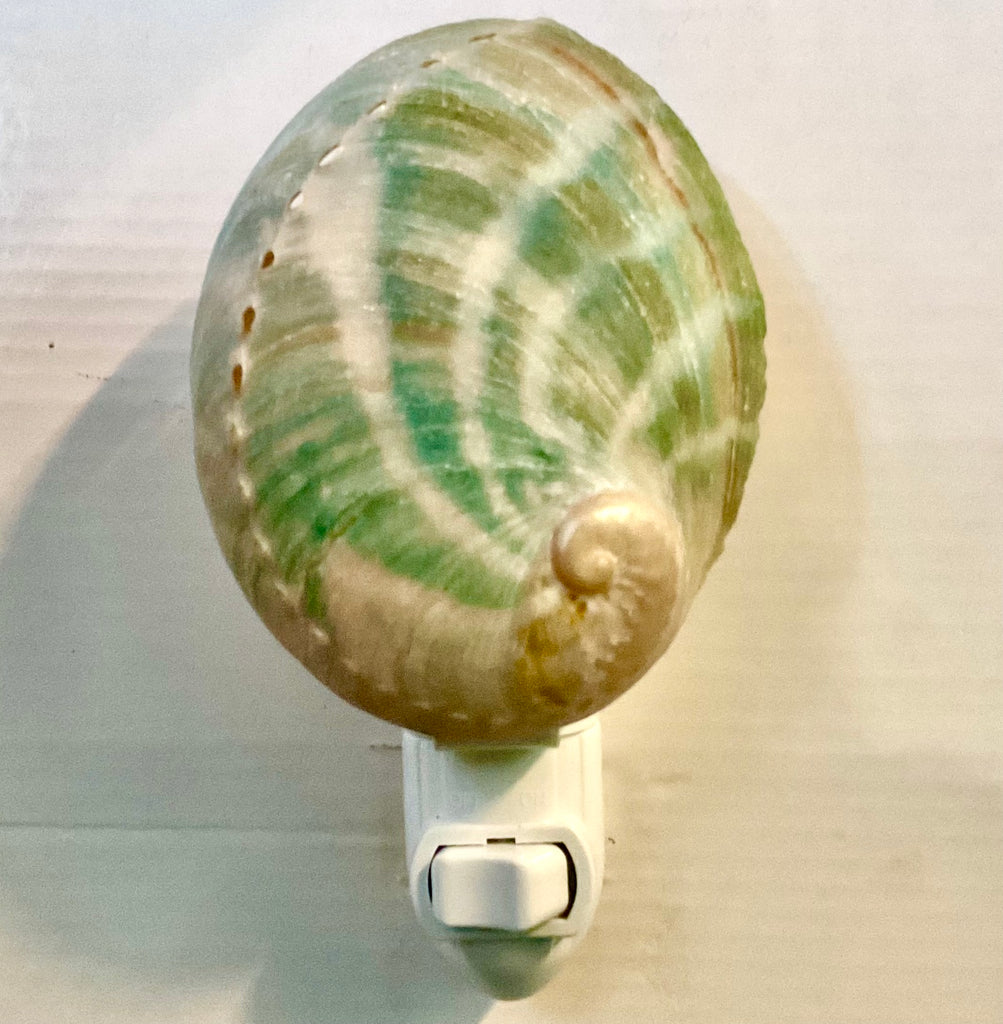 Glowing beautifully at night to add a little light to any room. Every shell will be slightly different due to nature. We will send you an Abalone Shell Nightlight that will be just as nice as the one pictured, but may not be the one pictured. The Small Red Abalone shell has been polished. It is considered a small red Abalone, but the color varies on every shell. The Green Abalone has some Browns and reds and may have a clear coating on the shell.