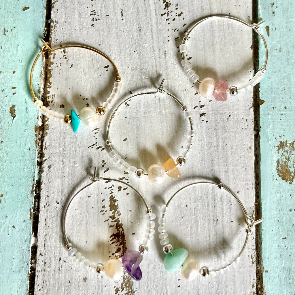 *Each set of wine charms may vary of colors and vibrancy of the stones, but each variant will have the same basic design. No color choice on the wire coloration*