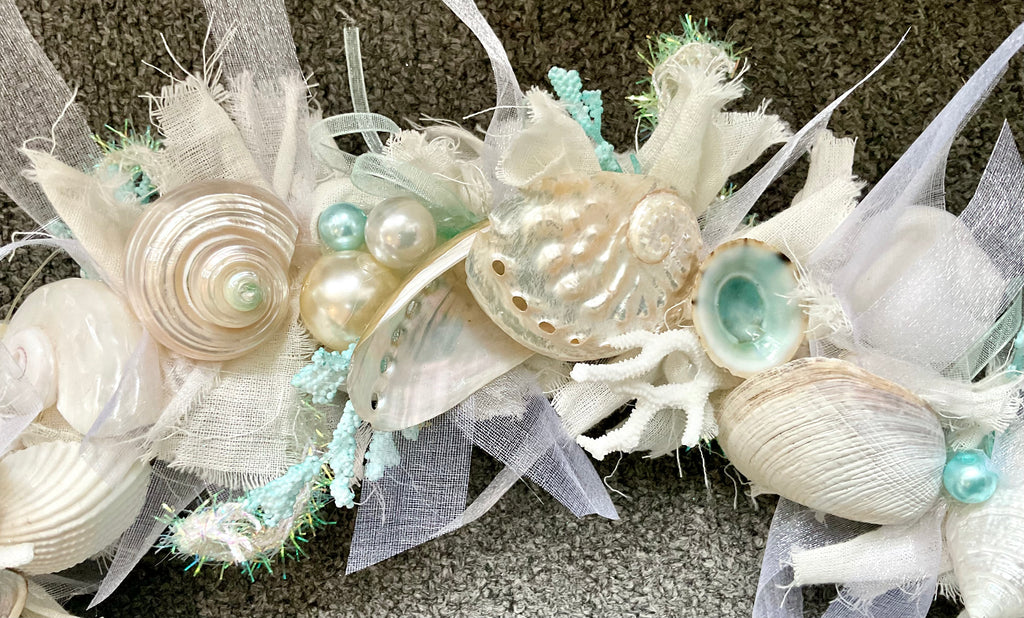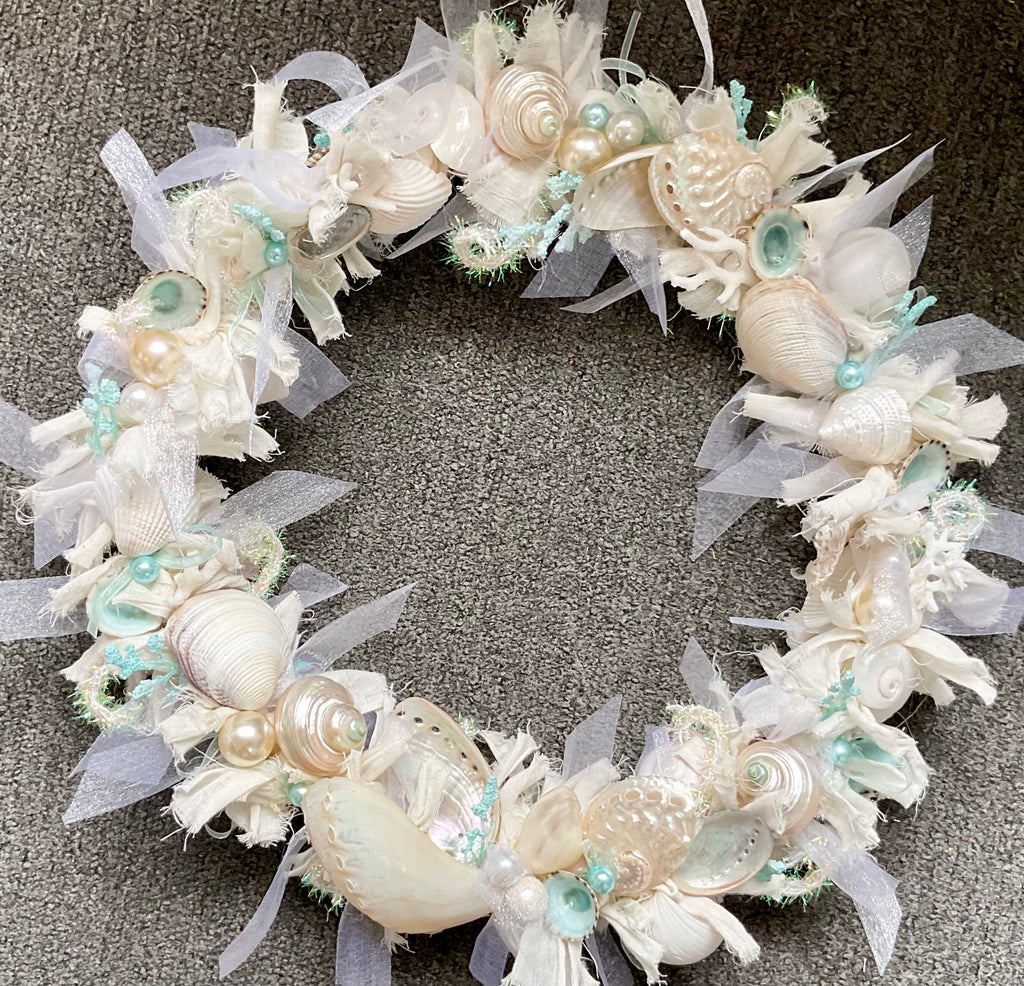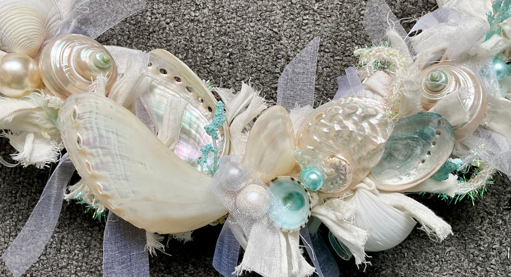 Shabby Shimmer Blue Limpet Seashell Wreath