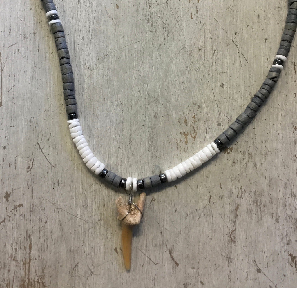 Wood Bead Shark Tooth Necklace