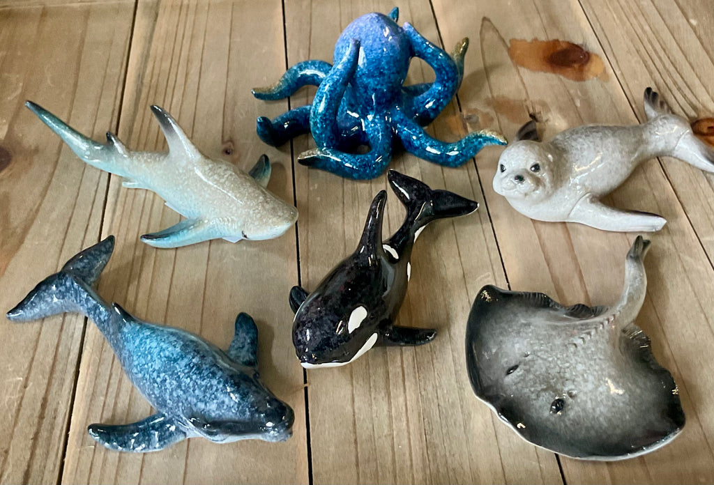 Beautiful Whale with a blue speckled coat of gloss that highlights the curvature and features of this figurine.